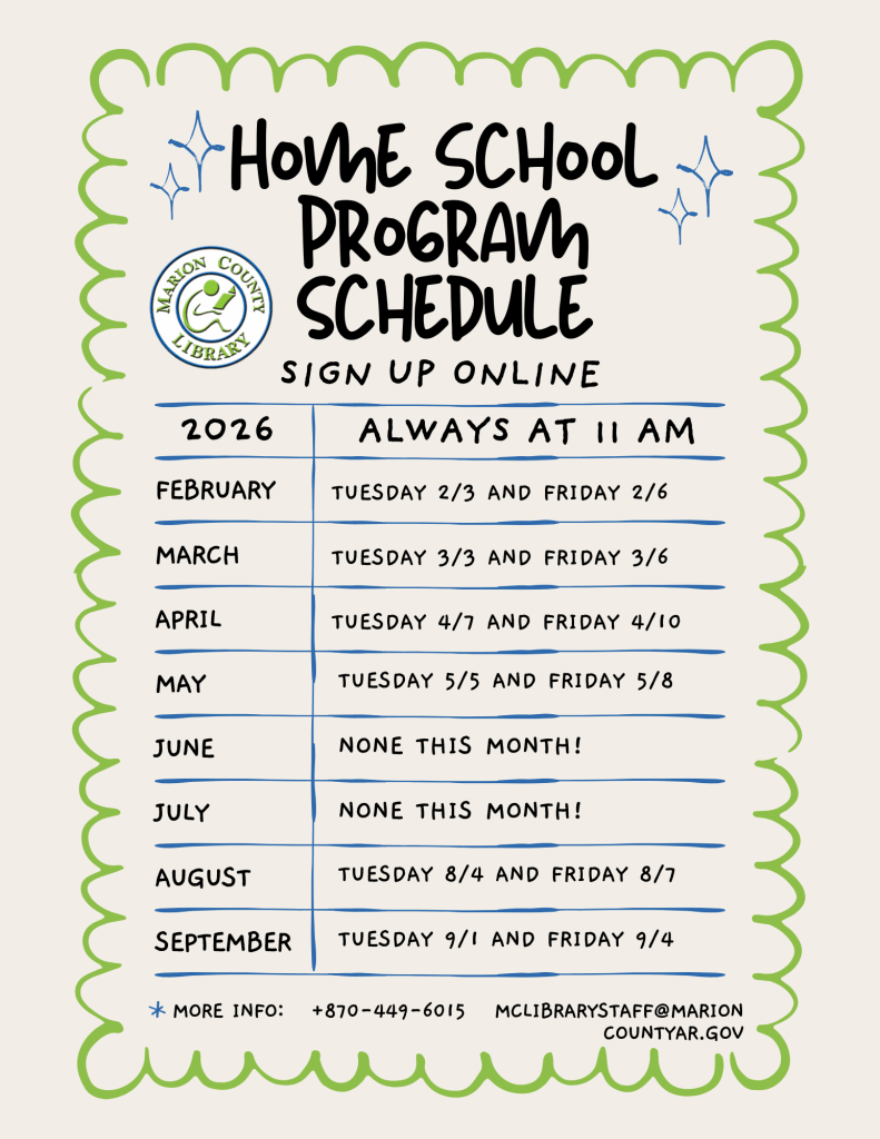 We are the Marion County Library, and we serve all residents of Marion County, AR. Looking for something fun to read, a good movie, or a cool board game? Here, you can find all that and more!